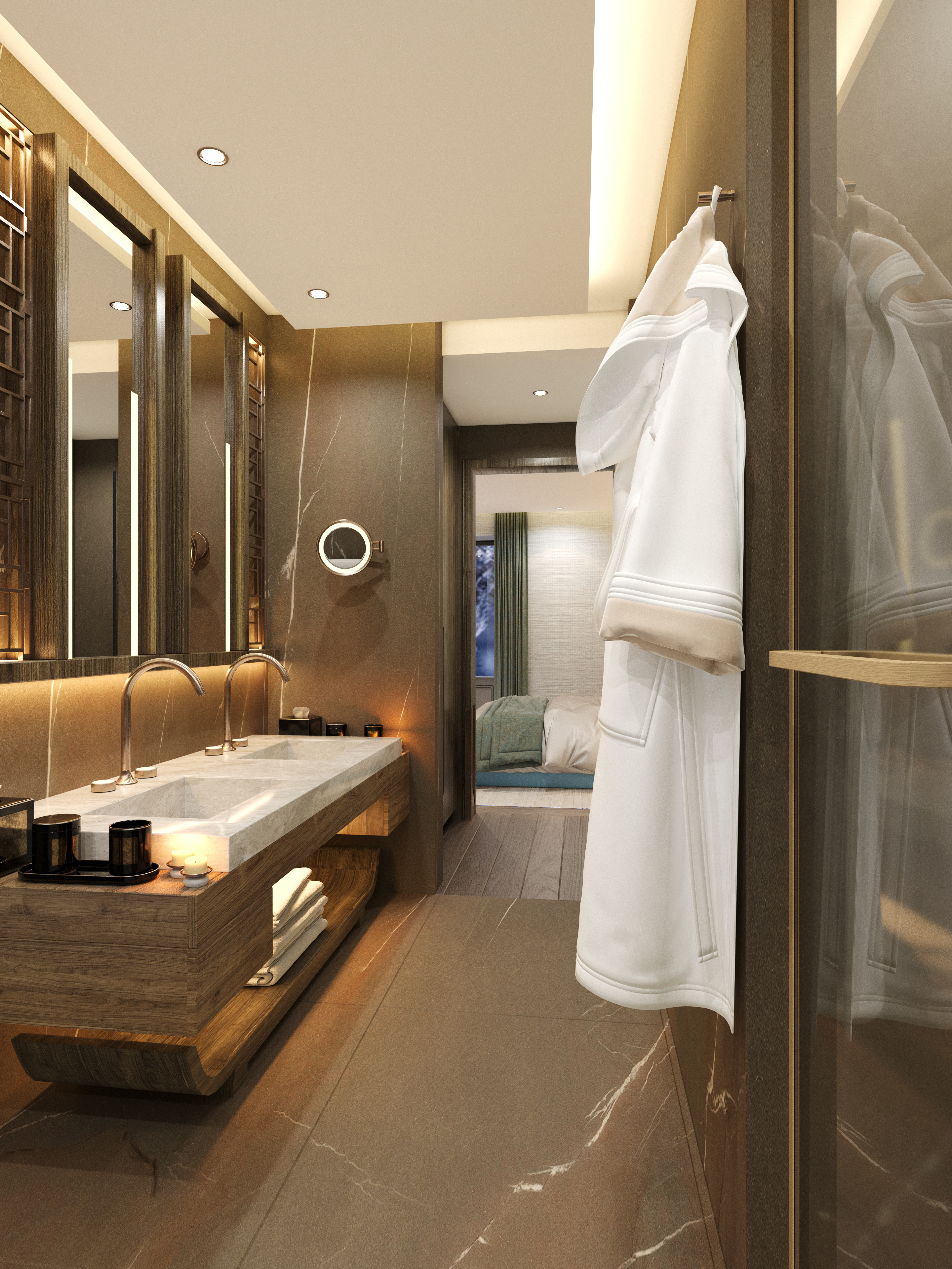 Elegant and understated, the Suite embodies the hotel’s serene blend of Japanese and Alpine influences. Featuring warm wood tones, marble details, and large windows overlooking the mountains, it offers a harmonious balance of comfort, sophistication, and space.