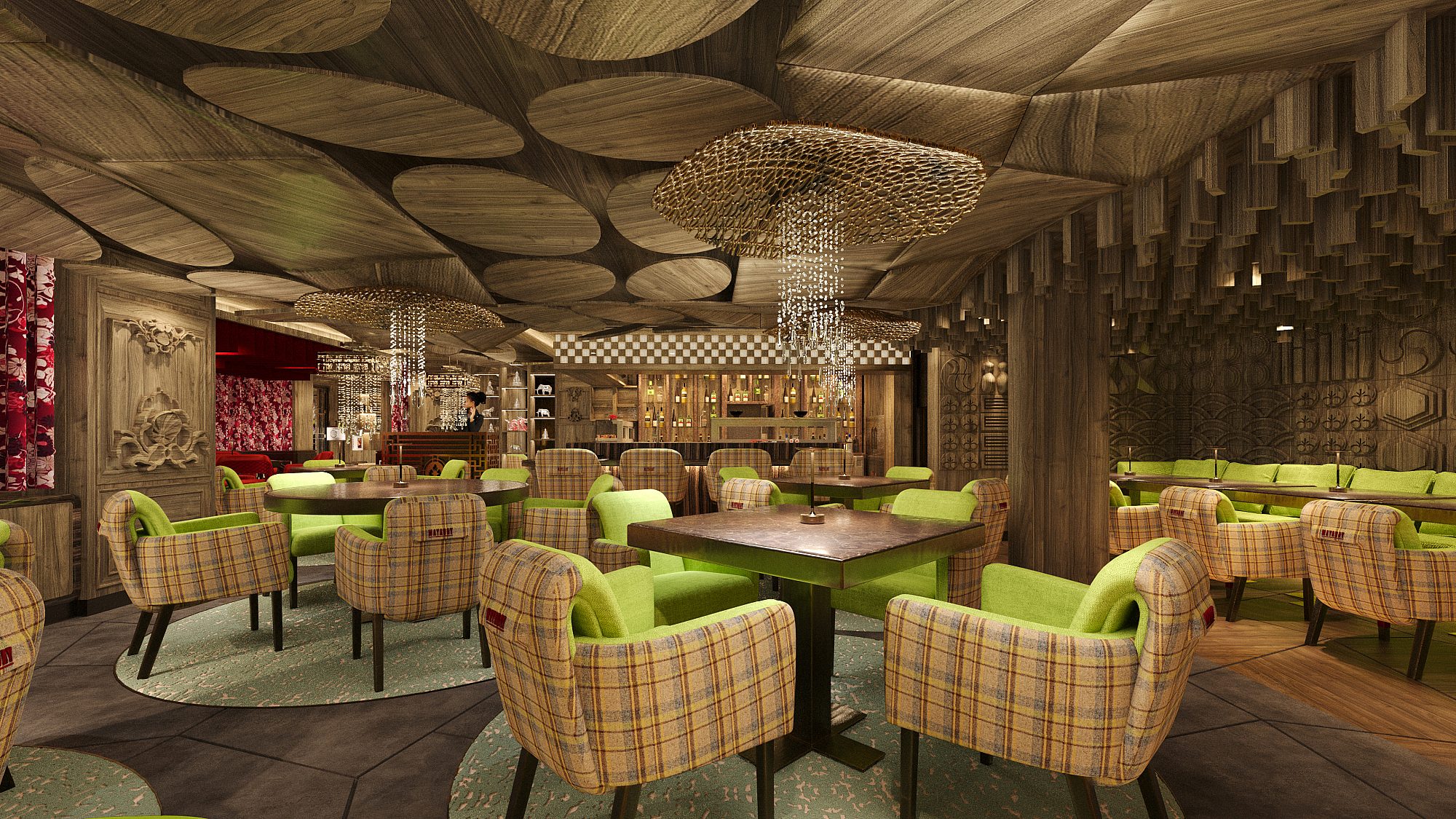 A chic social space that captures the warmth of mountain evenings. Guests can enjoy crafted cocktails, rare spirits, and an ambient mix of music and design — the ideal setting to unwind by the fire.